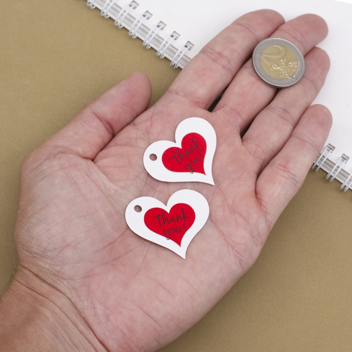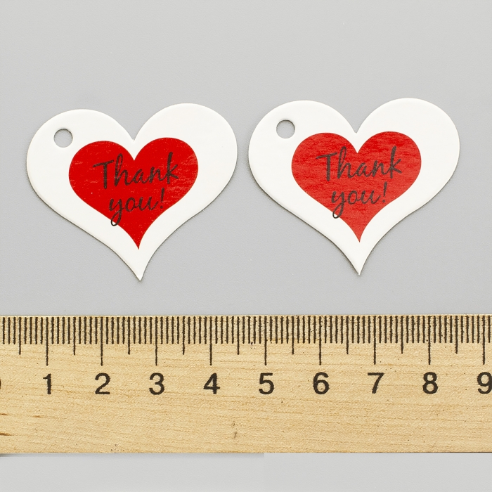 Бирки Подарочные "Thank You" Бумажные Сердце, Размер: 32x39x0.4мм, Отверстие: 4мм, (УТ100023607)