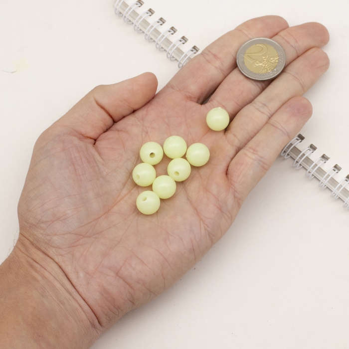 Бусины Акрил Флуоресцентные, Светящиеся, Круглые, Цвет: Светло-зеленый, Диаметр: 12мм, Отверстие 2мм, около 26шт/25г, (УТ100023912)