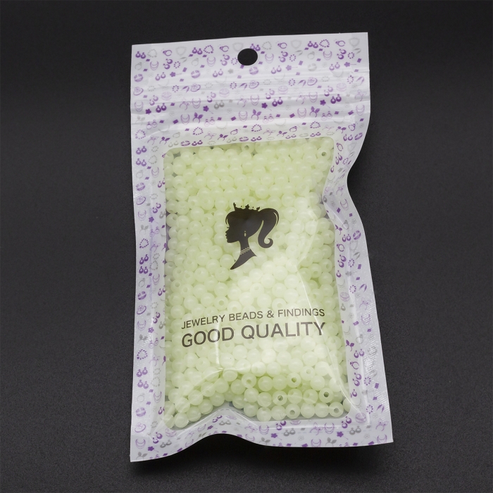 Бусины Акрил Флуоресцентные, Светящиеся, Круглые, Цвет: Светло-зеленый, Диаметр: 4мм, Отверстие 1.5мм, около 780шт/25г, (УТ100023913)