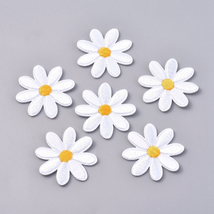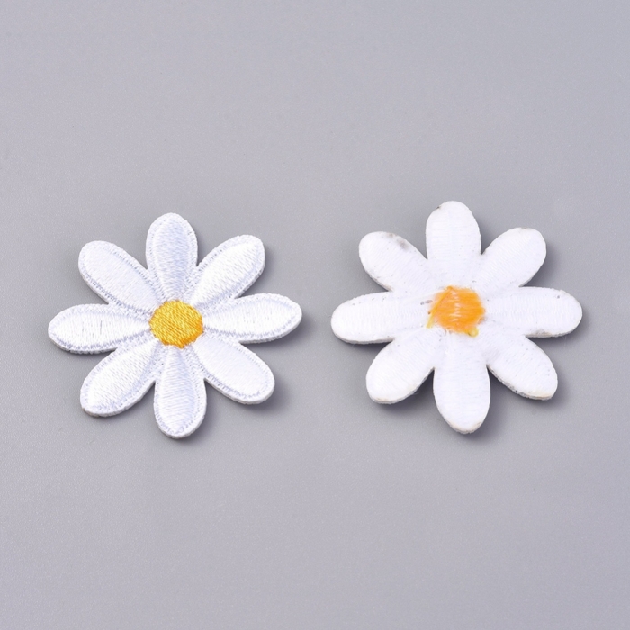 hot Нашивка на Одежду, Вышитая нашивка, Термонаклейка, Аппликация, Цветок, Цвет: Белый, Размер: 33x33x1.6мм, (УТ100023956)