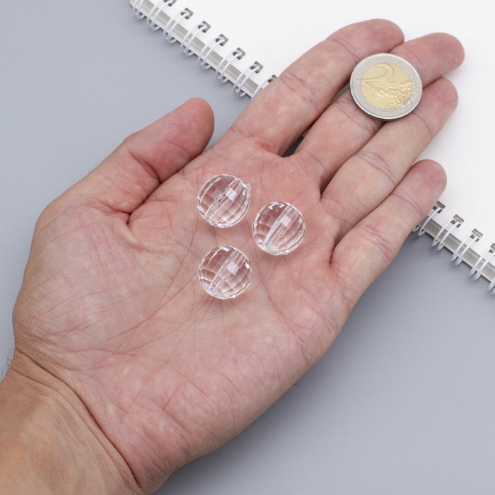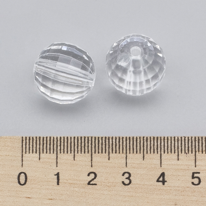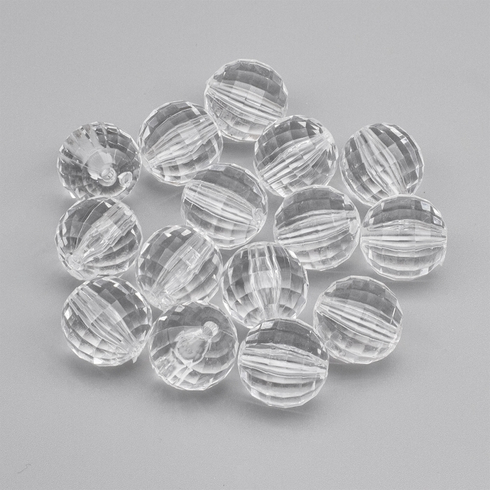 Бусины Акриловые Прозрачные, Граненые, Круглые, Цвет: Бесцветный, Диаметр: 18мм, Отверстие 3мм, (УТ100023939)