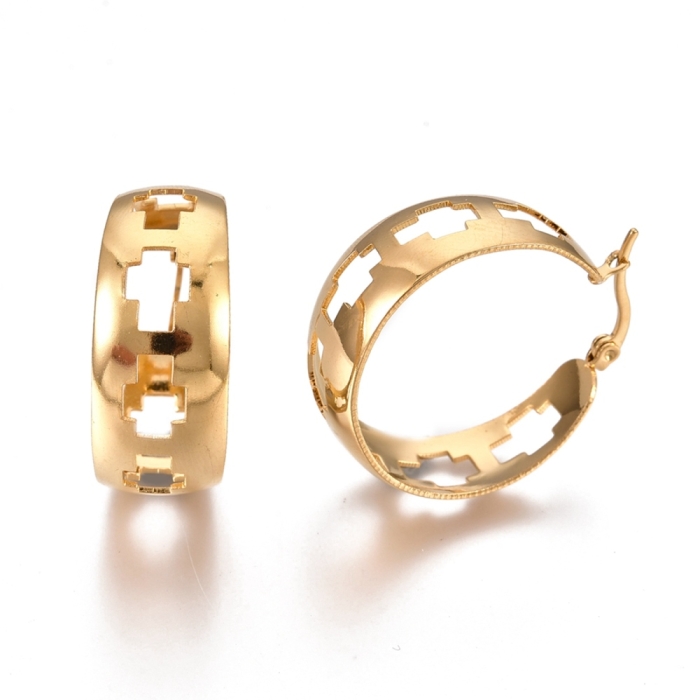 Серьги-кольца Широкие из 201 Нержавеющей Стали, Штифт из Нержавеющей Стали304, Полый Крест, Цвет: Золото.