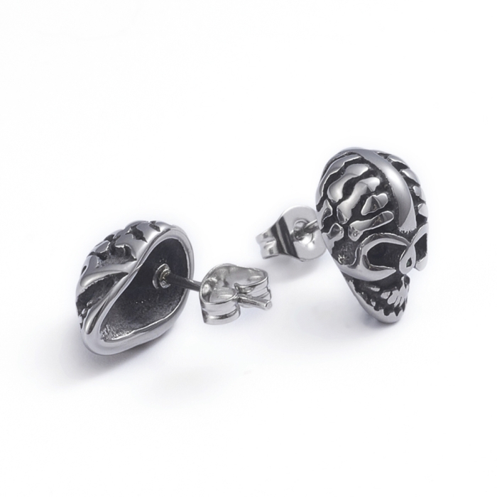 Серьги Пусеты, Нержавеющая Сталь, Череп, Цвет: Античное Серебро, Размер: 13x8мм, Штифт: 0.6мм, (УТ100024059)