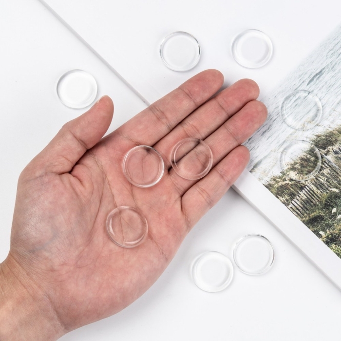 Кабошоны Стеклянные, Двухсторонние, Круглые Плоские, Цвет: Бесцветный, Размер: 25х4мм, (УТ100024401)