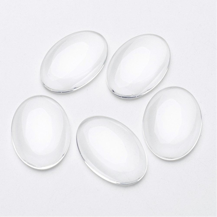 Кабошоны Стеклянные Овальные Прозрачные, Бесцветные, 30x20x6мм, (УТ100024416)