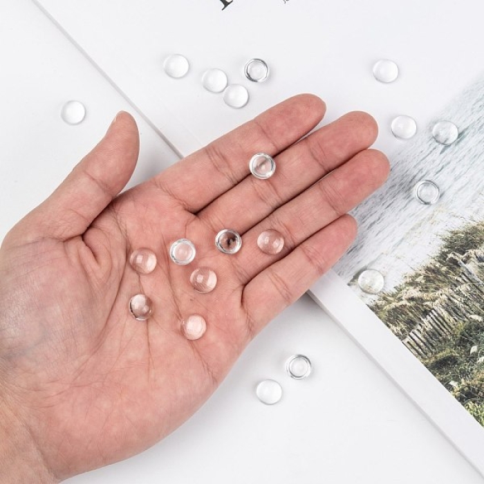 Кабошоны Стеклянные Круглые, Бесцветный, 12х5мм, 20шт/упак, (УТ100024425)