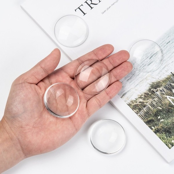 Кабошоны Стеклянные, Двухсторонние, Круглые Плоские, Цвет: Бесцветный, Размер: 25х4мм, (УТ100024401)