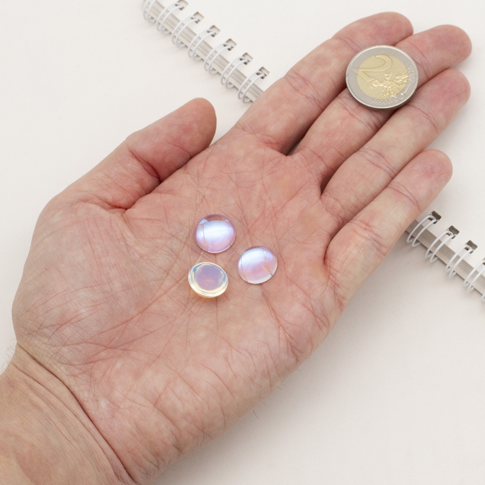 Кабошоны Стеклянные, Круглые, Цвет: Бесцветный, Покрытие АВ-цв, Размер: 14x7мм, (УТ100024450)