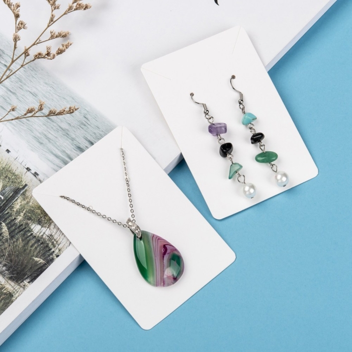 Каждая дисплей-карта имеет два отверстия. Их можно использовать одновременно, еще одно отверстие в верхней части каждой карты удобно для подвешивания. Они идеально подходят для демонстрации ваших ювелирных изделий.