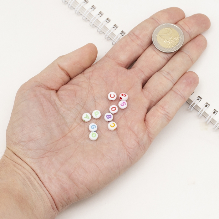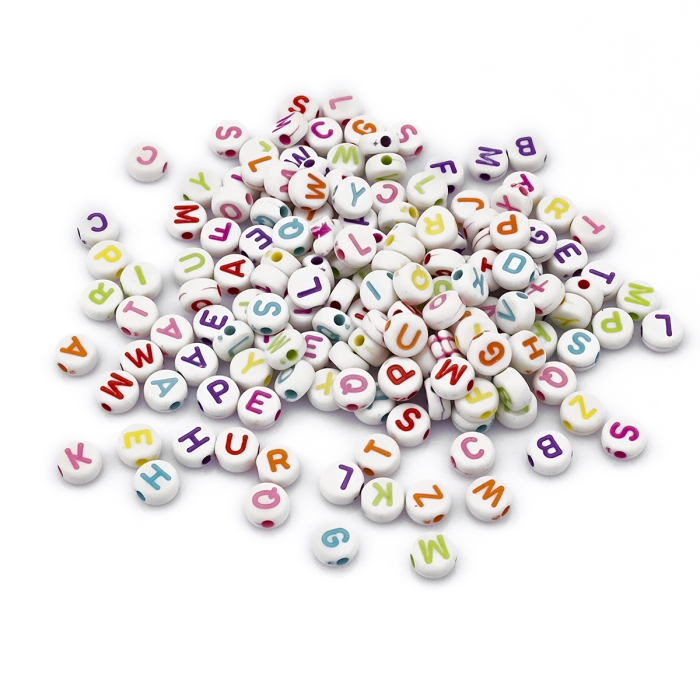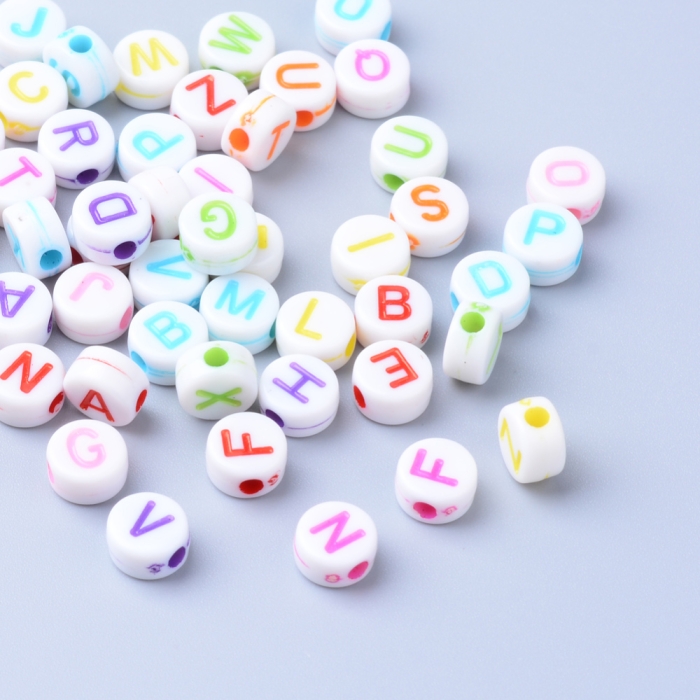 Бусины Акрил Буквы Микс, Круглые Плоские, Цвет: Серебро, Размер: 7x3.5мм, Отверстие 1мм, около 175шт/25г, (УТ100013107)