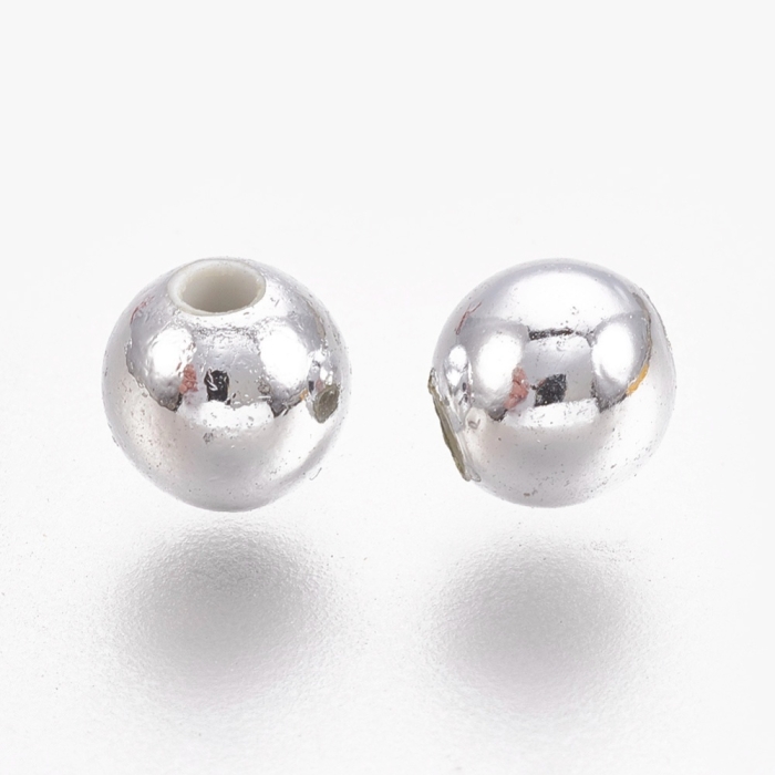 Бусины Пластиковые ABS, Круглые, Гальваническое Серебряное Покрытие