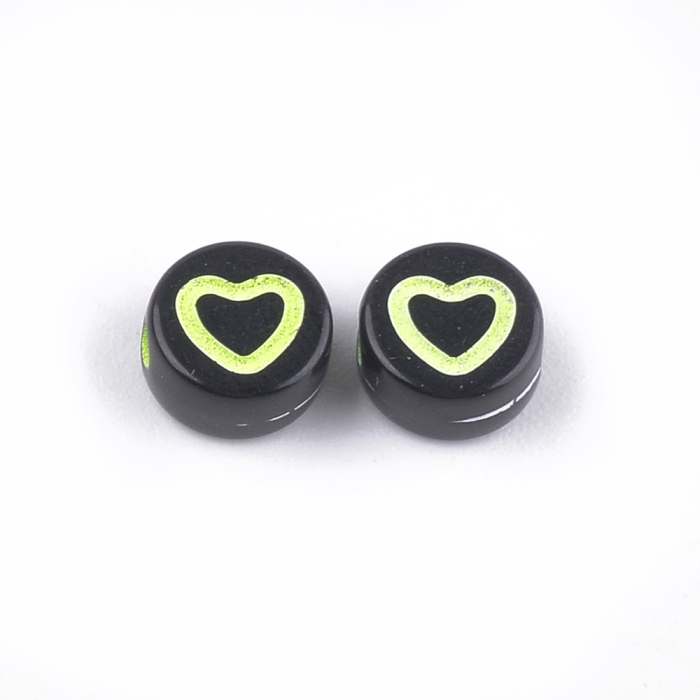 Бусины Акрил Крафт Стиль, Круглые Плоские с Сердцем, Цвет: Микс, Размер: 7х3.5мм, Отверстие 1.5мм, около 200шт/25, (УТ100024872)
