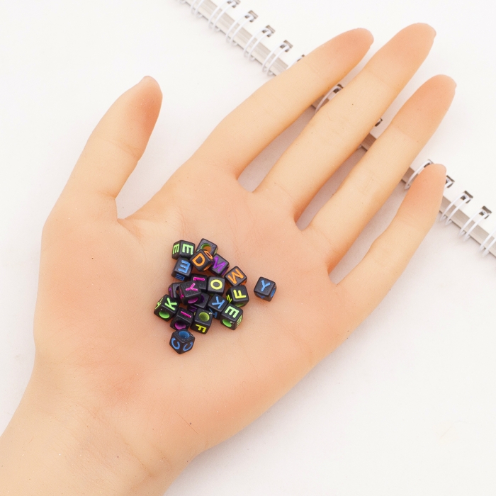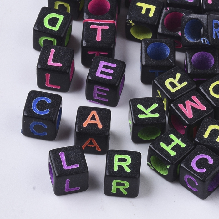 Акриловые Непрозрачные Бусины Кубики с Разноцветными Буквами