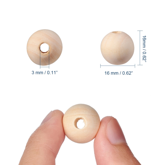 Бусины Деревянные Круглые Неокрашенные, 16х15мм, Отверстие 3мм, (УТ100024946)