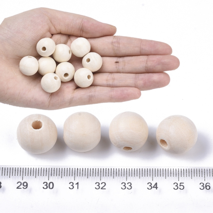 Бусины Деревянные, Круглые, Гладкие Вощеные, Неокрашенные, 16мм, Отверстие 3мм, (УТ100025010)