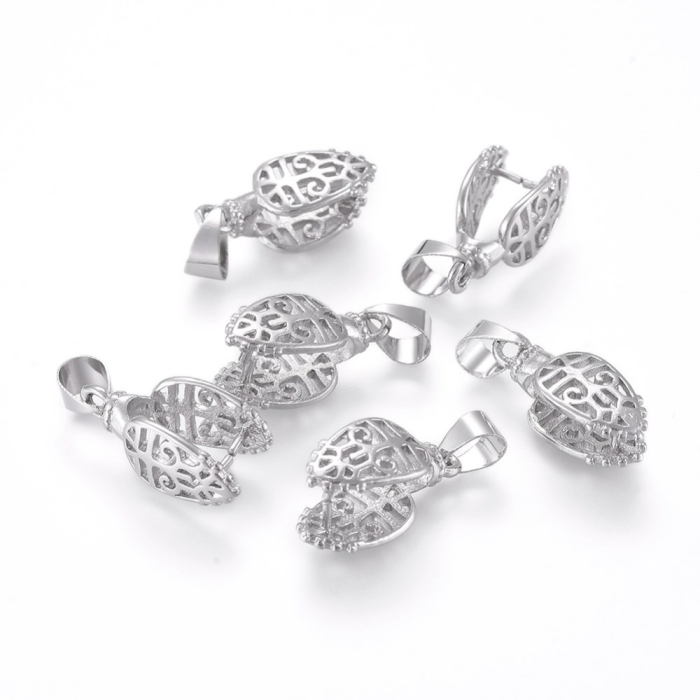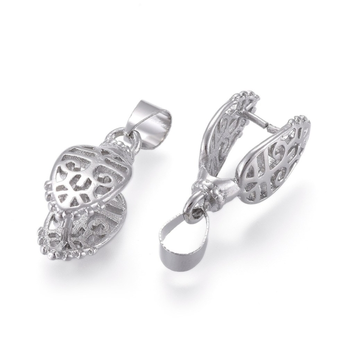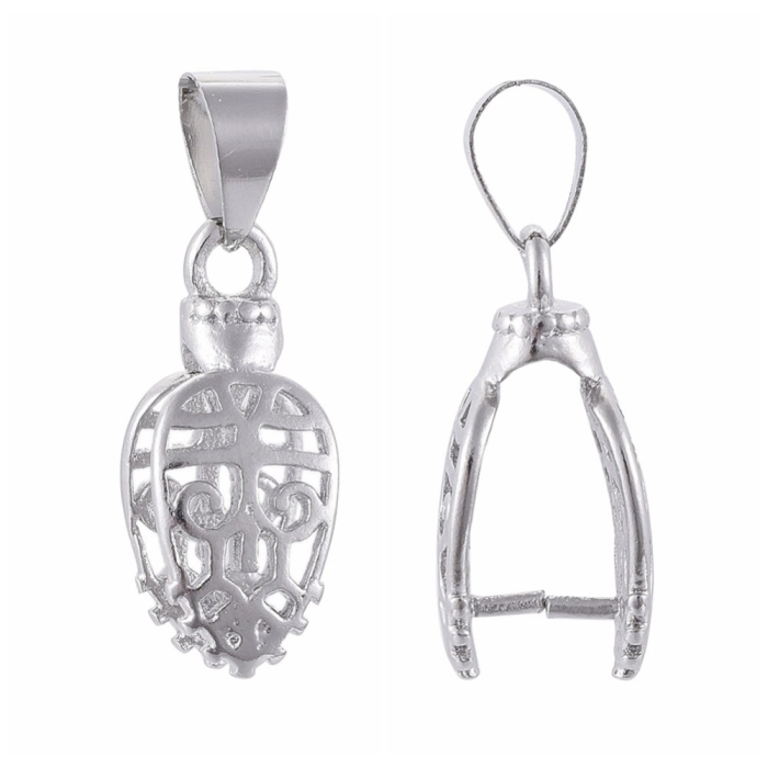 Держатель для Кулонов, Латунь, Лист, Цвет: Платина, Размер: 18.5мм, Пин 1мм, Отверстие 5х4мм, (УТ100025190)
