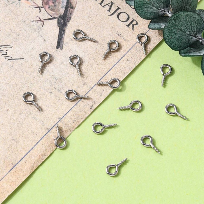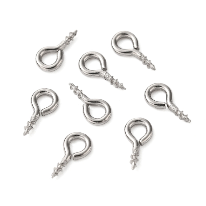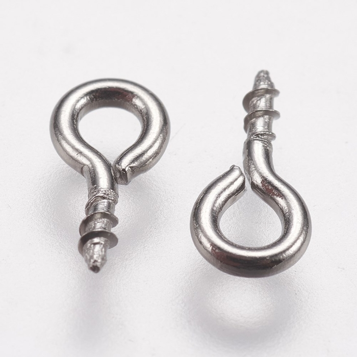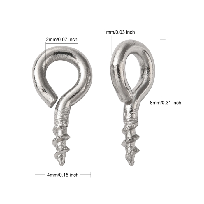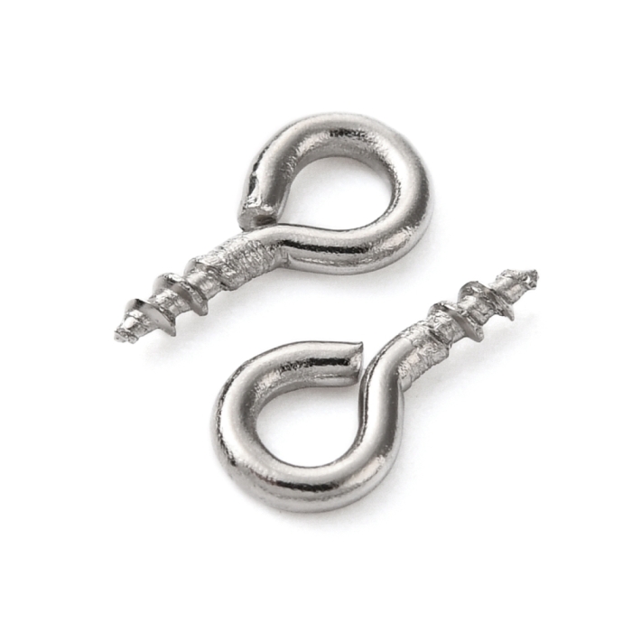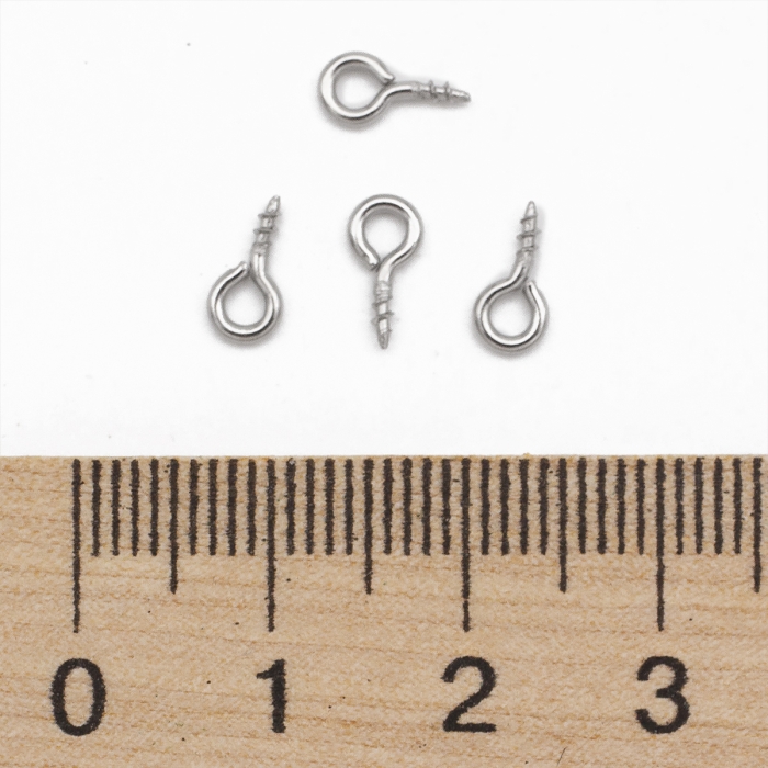 Держатели Винтовые Штифты с Петлей, для Бусин с Полуотверстием, Нержавеющая Сталь, 8х4х1мм, Отверстие 2мм, (УТ100025214)