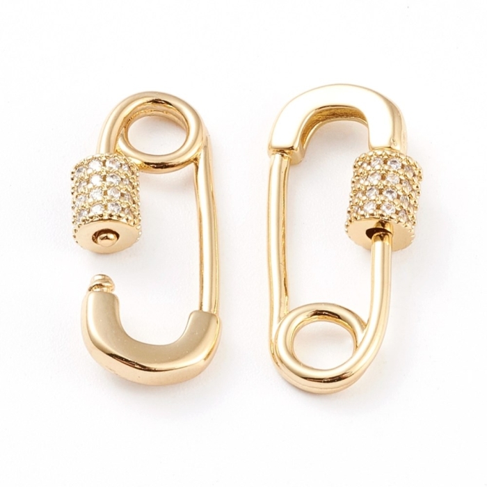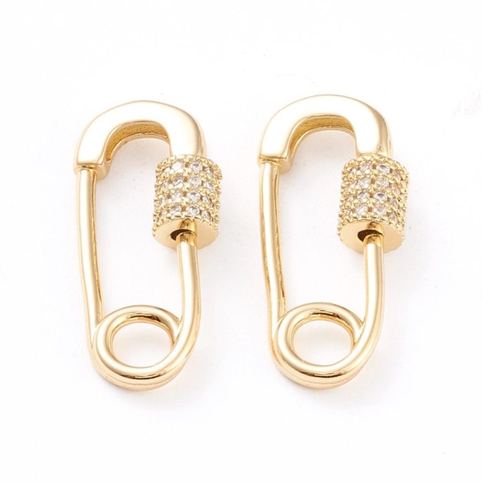 Карабин латунь и фиаиниты. Покрытые Золотом 18К толщиной 0.01~0.03мкм (позолота 750 проба)