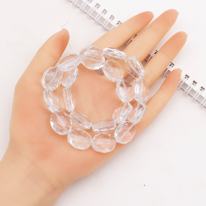 Стеклянные прозрачные гранёные овальные бусины отличаются изысканным блеском и игрой света благодаря гладкой огранке. Они идеально подходят для создания стильных украшений – браслетов, колье, серёжек, подвесок и декоративных элементов. Такие бусины прекрасно сочетаются с металлом, натуральными камнями и другими материалами, придавая изделиям утончённость и элегантность.