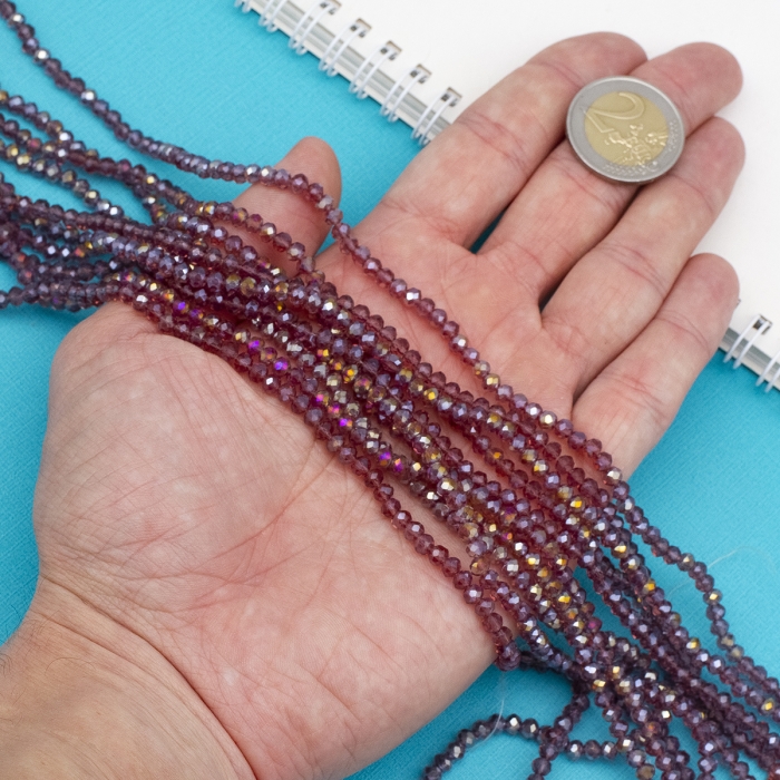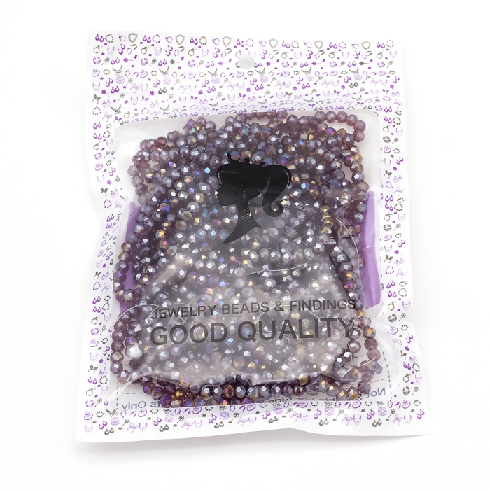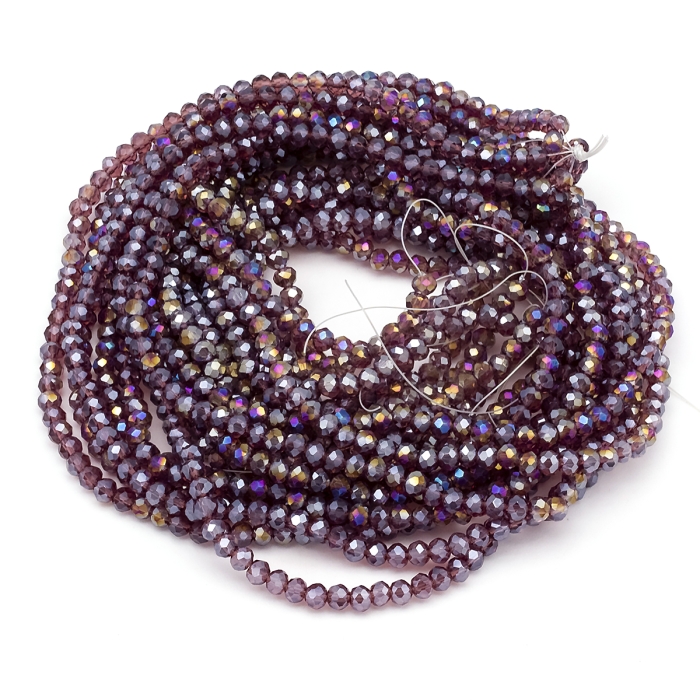 Бусины Гальваника Стекло АВ-Цвет, Граненые, Рондель, Цвет: Сиреневый, Размер: 4х3мм, Отв-тие: 0.4мм, около 116шт/40см/нить, 10нитей (УТ100025434)