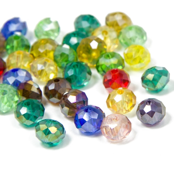 Бусины Гальваника Стекло АВ-Цвет, Граненые, Рондель, Цвет: Микс, Размер: 6х4мм, Отв-тие: 1мм, около 200 шт/упаковка, (УТ100026020)