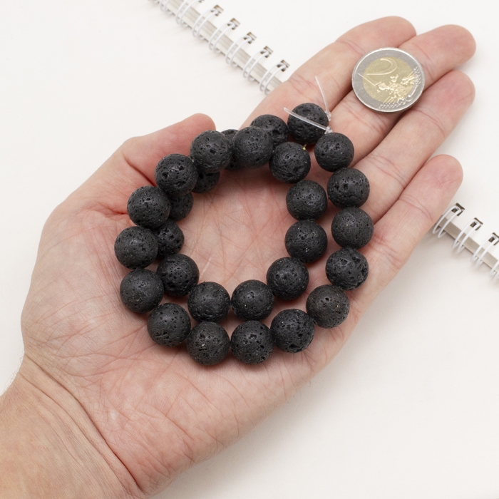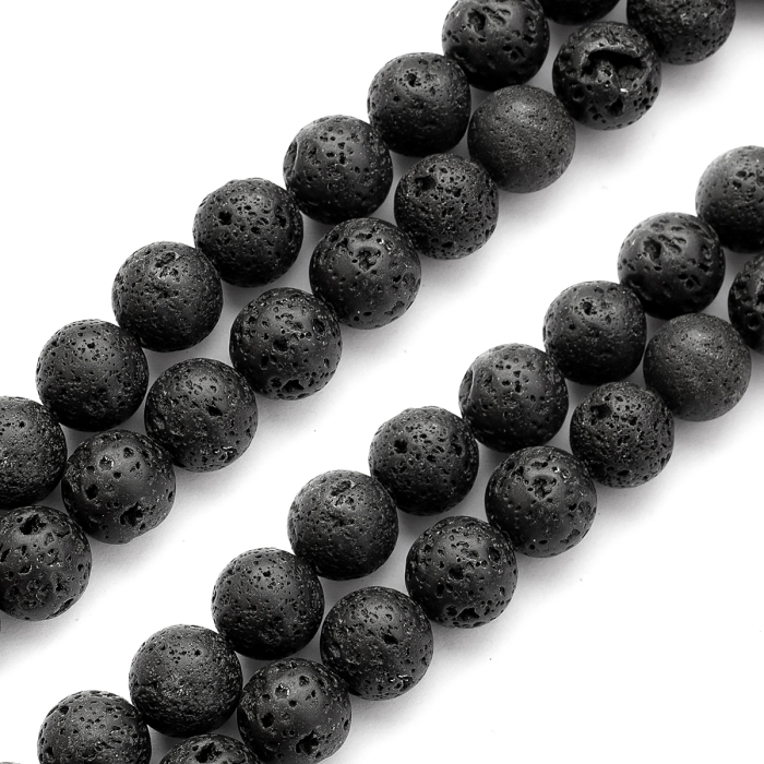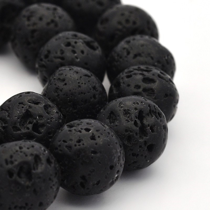 Бусины Натуральная Лава, на нитях, Круглые, Цвет: Черный, Размер: 14мм, Отверстие 1мм, около 26шт/37см/нить, (УТ100026095)