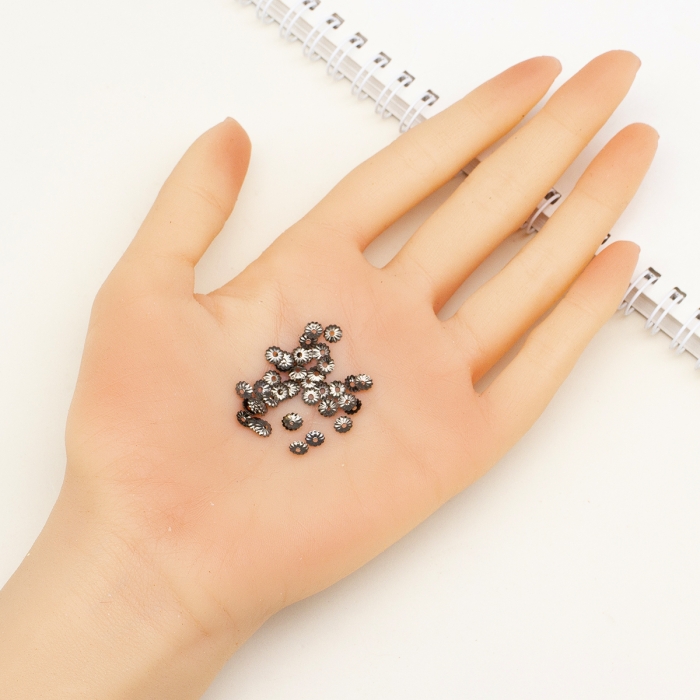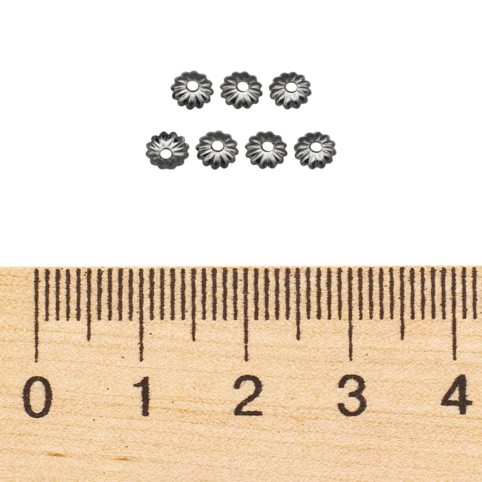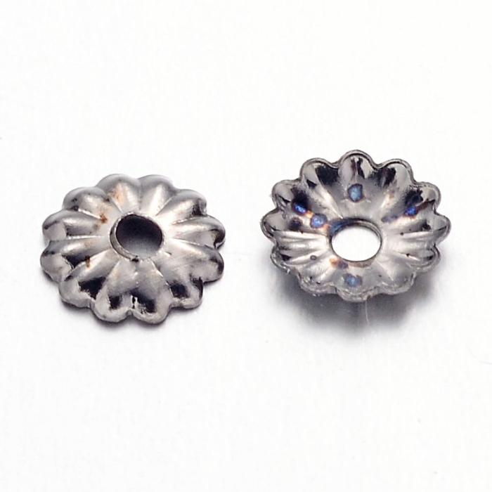 Шапочки для Бусин Железные, Цветок, Цвет: Оружейная Сталь, Размер: 5х1.5мм, Отверстие 1мм, около 460шт/10г, (УТ100025507)