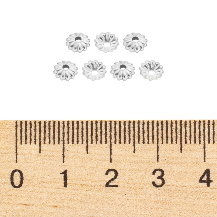 Шапочки для Бусин Железные, Цветок, Цвет: Серебро, Размер: 5х1.5мм, Отверстие 1мм, около 410шт/10г, (УТ100026209)