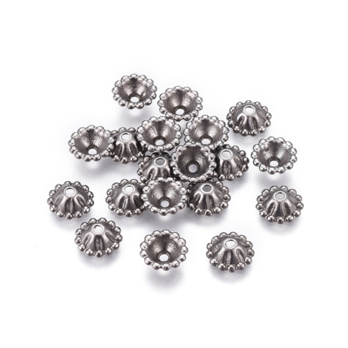Шапочки для Бусин из Сплава, Цветок, Цвет: Оружейная Сталь, Размер 8х3мм, Отверстие 1мм, (УТ100026279)