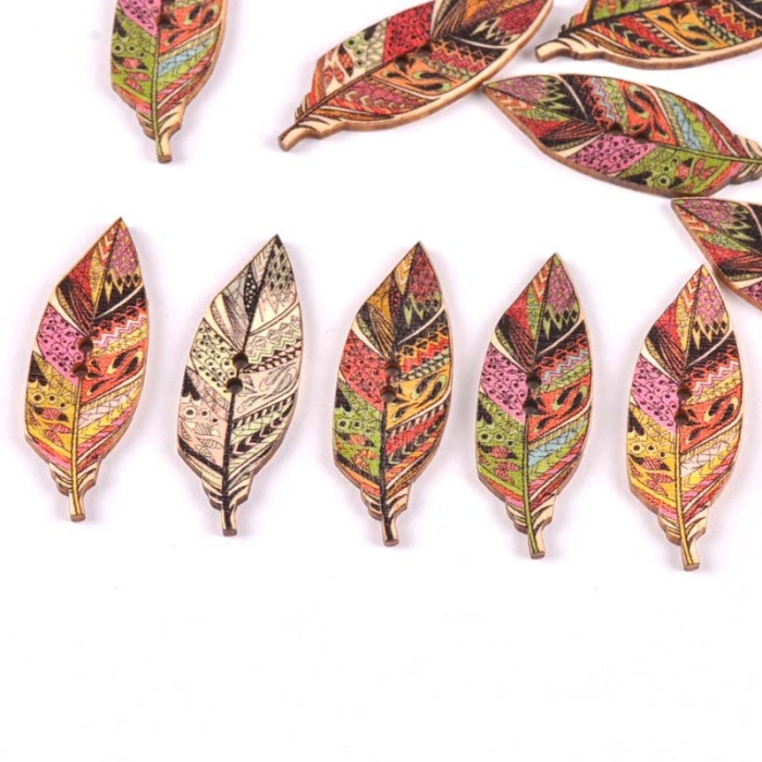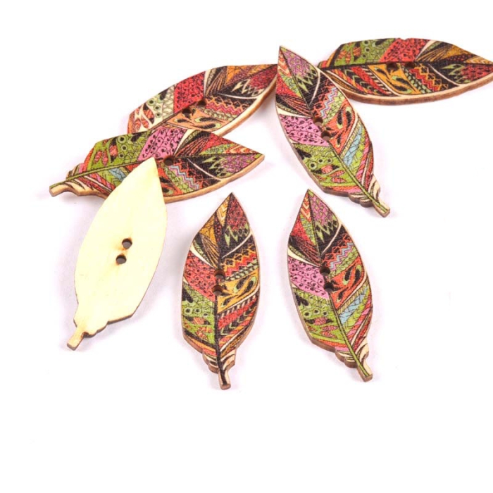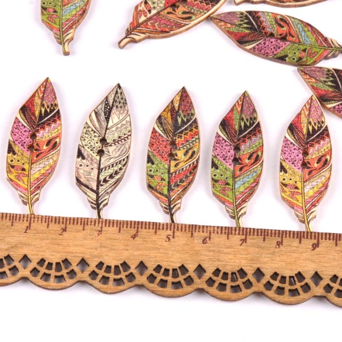 Пуговицы Деревянные, 2-отверстия, Лист, Цвет: Микс, Размер: 42х15мм, Отверстие 1мм, (УТ100026502)Цвет: