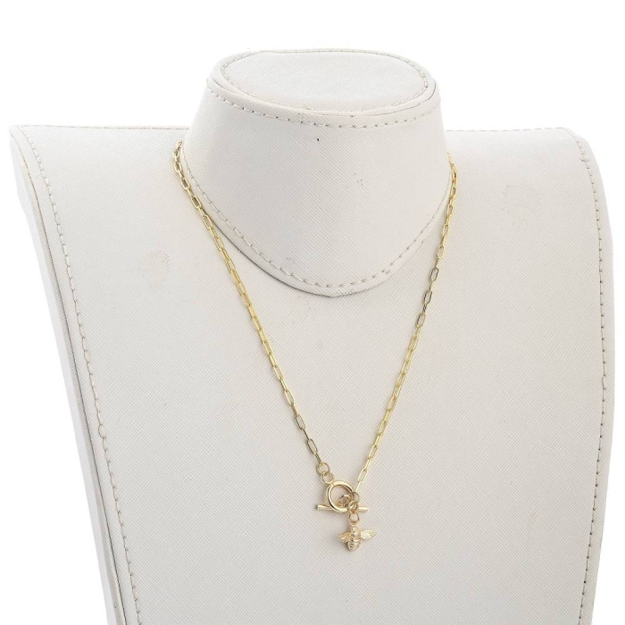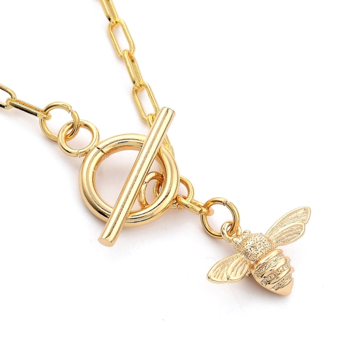 Ожерелье с Кулоном в виде Пчелы из Латуни, Застежка Тогл из 304 Нержавеющей Стали, Покрытие Золото 18К толщиной 0.01~0.03мкм (позолота 750 проба).