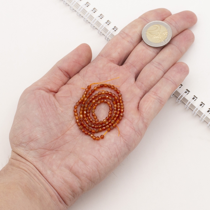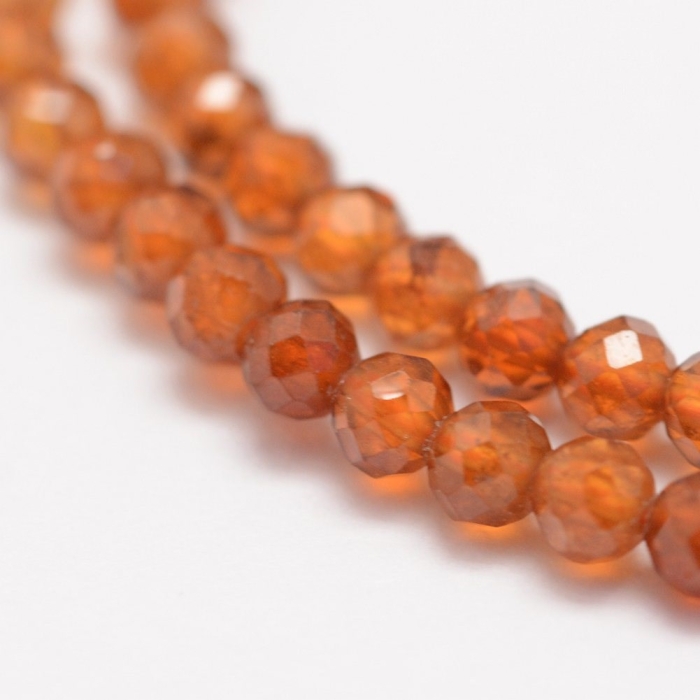 Натуральные граненые бусины из редкого оранжевого граната. Камень имеет теплый яркий оттенок с естественным блеском, а гранирование придает украшениям сияние и изящество. Оранжевый гранат ассоциируется с жизненной энергией, радостью и творческим вдохновением.
