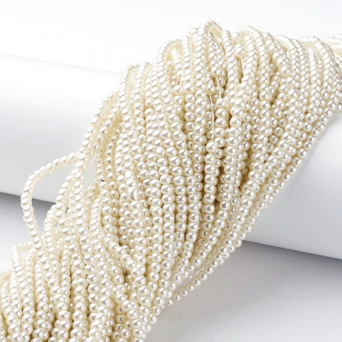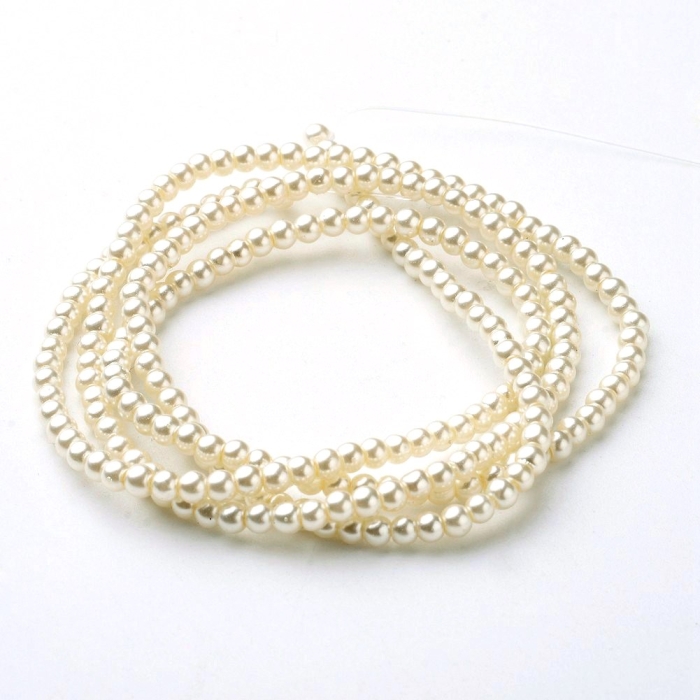 Жемчуг Бусины Стекло, Глянцевые, Круглые, Слоновая Кость, 3мм, Отв-тие 0.5мм, около 185шт/55см/нить, (УТ100026916)