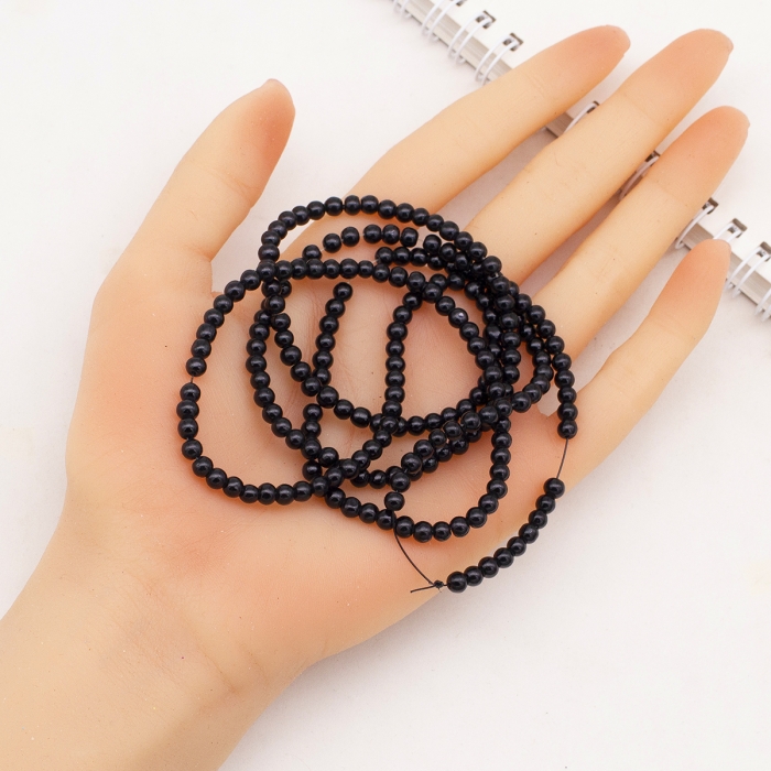 Жемчуг Бусины Стеклянные Глянцевые Круглые, Черный, 4-5мм, Отверстие 0.5мм, около 200шт/75см/нить, (УТ100026918)