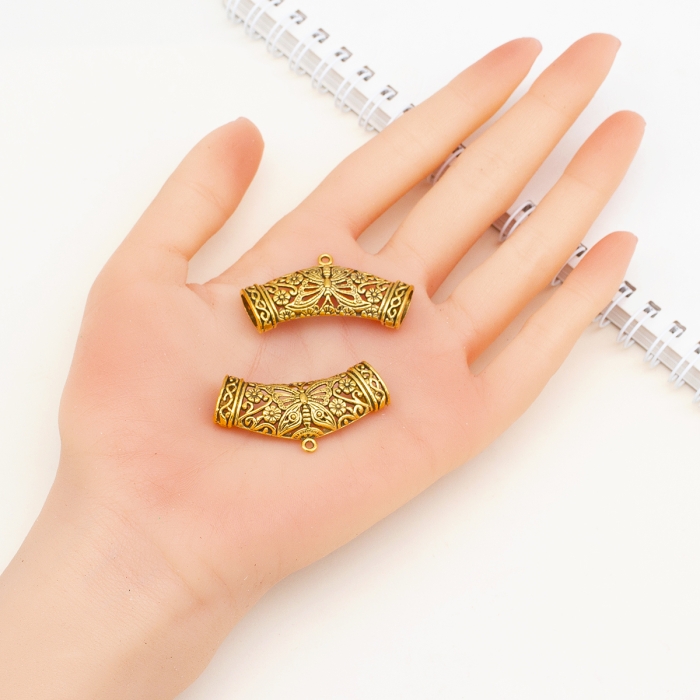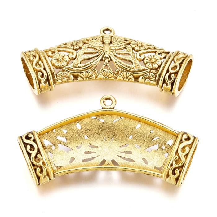 Бейл из Бижутерного Сплава, Трубка, в Тбетском Стиле с бабочкой и цветочным узором.