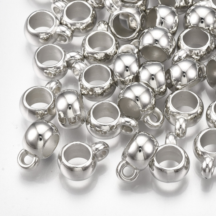 Бейл Бочонок Пластиковый, Тибетский Стиль, для Кулонов и Подвесок, Платина, 11х5х8мм, Отверстие 1.5мм, (УТ100027013)