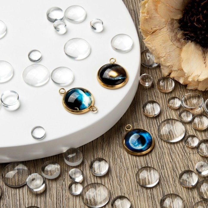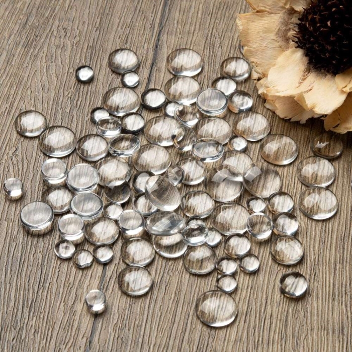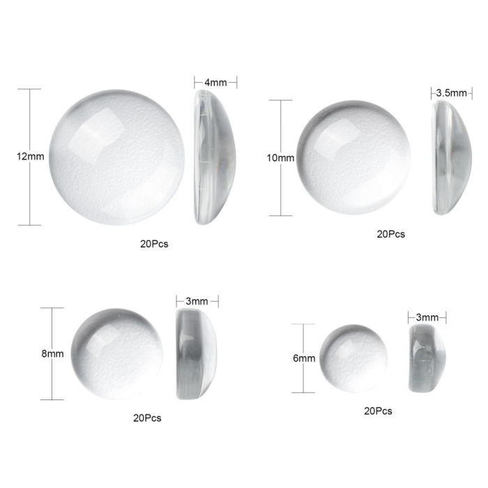 Набор Кабошоны Стеклянные Круглые, Бесцветные, 6~12мм, 80шт/упак, (УТ100027195)