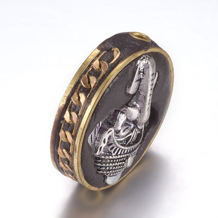Бусины Индонезийские Ручной Работы, Полимерная Глина и Латунь, Круглые Плоские, Индийский Слон