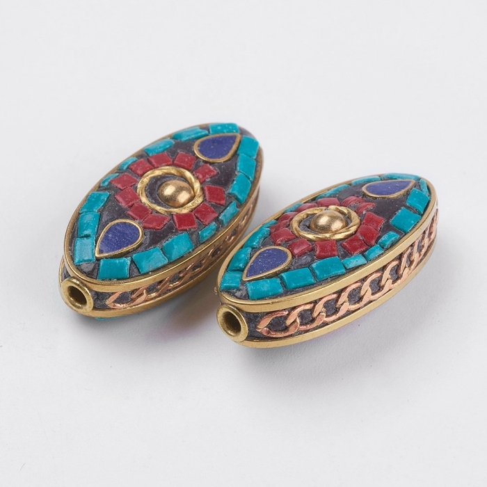 Бусины Индонезийские Ручной Работы, Полимерная Глина и Латунь, Конский Глаз, Размер: 29x14~14.5x9~10.5мм, Отверстие 2мм, (УТ100027260)