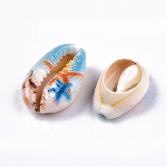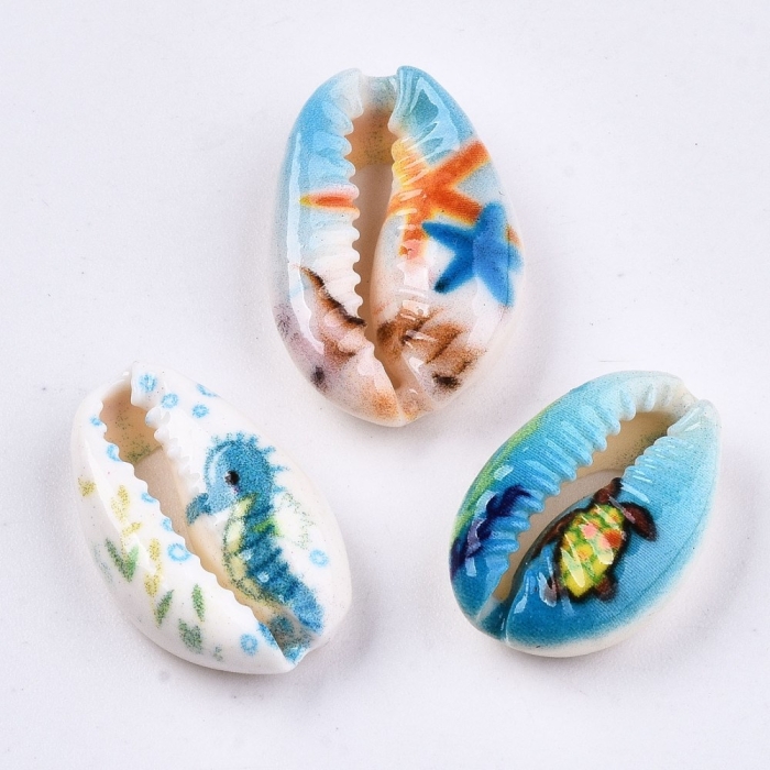 Морские ракушки Каури с нанесённым принтом — это уникальные элементы для создания оригинальных и ярких украшений. Принт на поверхности придает индивидуальность и подчёркивает декоративную ценность ракушек, делая их выразительными и привлекательными. Такие ракушки сохраняют свою природную форму, но приобретают художественные детали, которые корректируют их применение в хороших дизайнерских проектах.