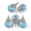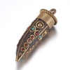 Бусины из Латуни Тибетский Стиль, Вставки из Коралла и Бирюзы, Античное Золото, 8-25x8-13мм, Отверстие 1-1.5мм, 50шт/набор, (УТ100027838)