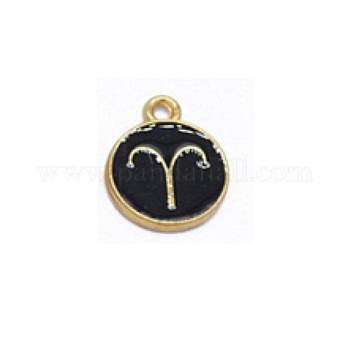 Подвески Набор Знаки Зодиака из Бижутерного Сплава и Эмали, Плоские Круглые