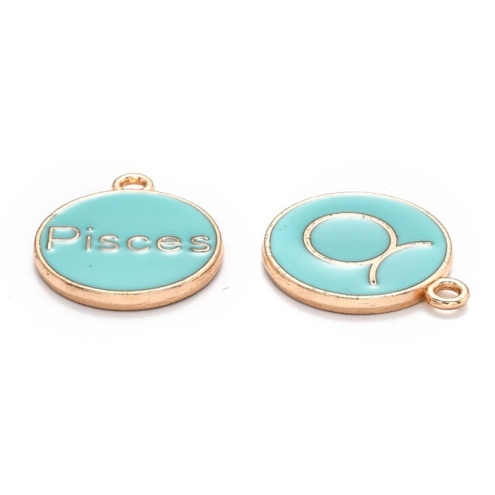 Подвески Набор Знаки Зодиака, Сплав и Эмаль, Цвет: Светло-зеленый, Размер: 15х12х2мм, Отверстие: 1.5мм, 12 шт/набор, (УТ100027899)