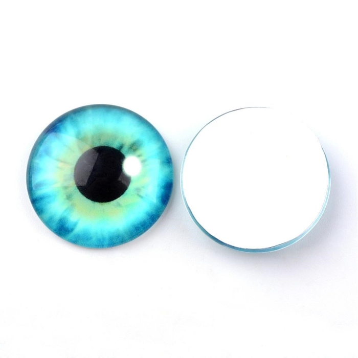 Кабошоны Глаз Стеклянные, Круглые, Цвет: Зеленый Морской, Размер: Диаметр 14мм, Толщина 4мм, (УТ100027909)