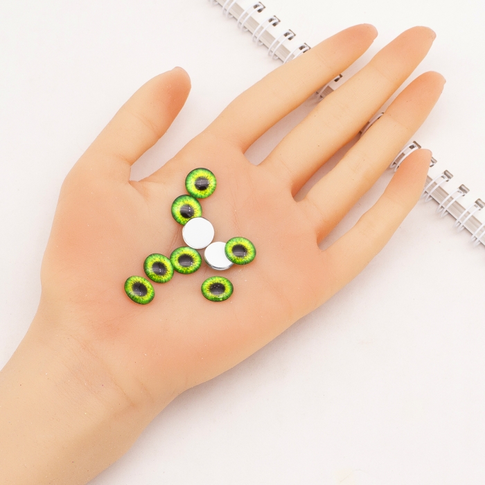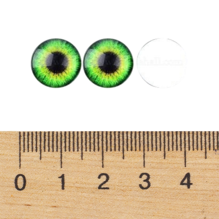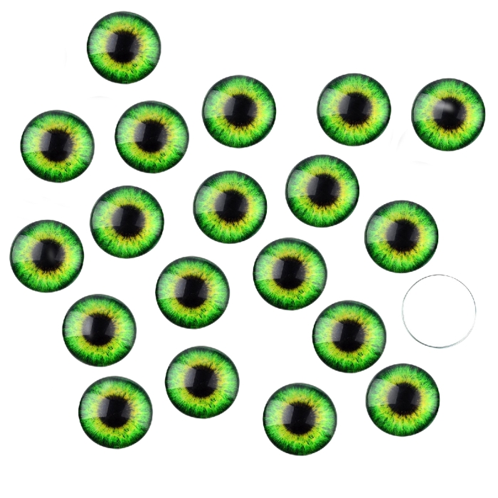 Кабошоны Глазки Стеклянные Круглые, Зеленый Газон, 12х4мм, (УТ100027914)