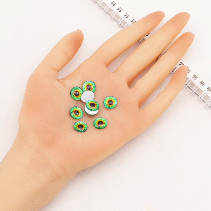 Кабошоны Глазки Стеклянные Круглые, Весенний Зеленый, 12х4мм, (УТ100027918)