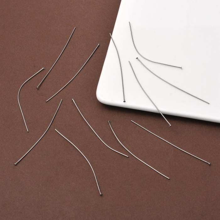 Пины – это металлические штифты, применяемые для сборки бусин и отдельных деталей фурнитуры в цельное изделие.Такой вид фурнитуры для бижутерии используют для завершающих, крайних элементов, т.е. когда бусина или подвеска крепятся к изделию только с одной стороны.