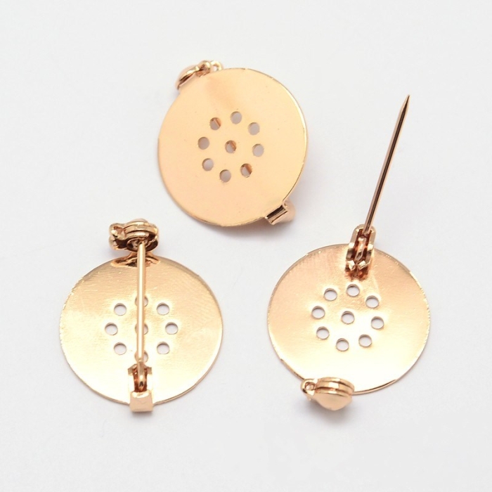 Основа под Брошь Латунь Круглая Класс ААА, Покрытие Золото 18К, 18х3мм, Отверстие 1мм, Пин 1мм, (УТ100027994)
