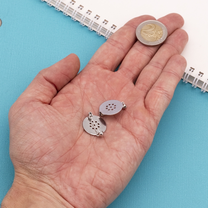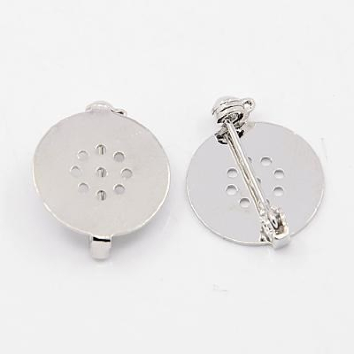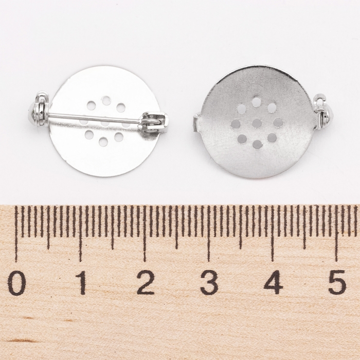 Основа под Брошь Латунь Булавка Круглая, Платина, 22х18х5мм, Пин 0.8мм, (УТ100028197)