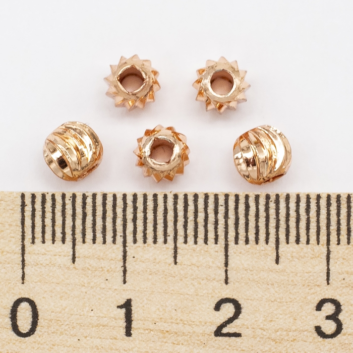 Бусины, Латунь, Круглые, Рифленые, Стойкое Покрытие Розовое Золото, Размер: 6х5мм, Отверстие 2мм, (УТ100028233) - ᐈ заказывайте в Москве оптом и в розницу ✅Скидки ✅Акции ✅Распродажи ᐈ доставка по всей России ᐈ Интернет-магазин Мир Бусин